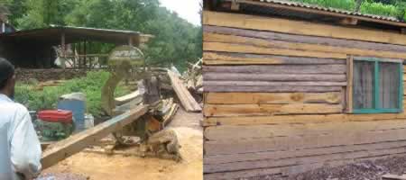 現地で専門のオペレーターを雇い、毎日忙しく製材を行っています。これにより、仮設住宅の 建築もはかどっています。